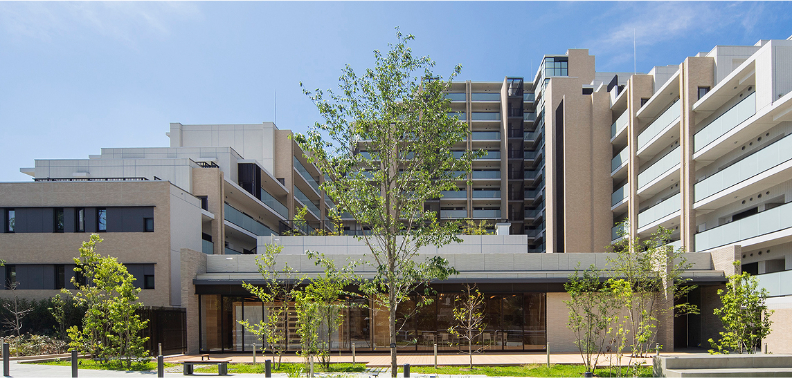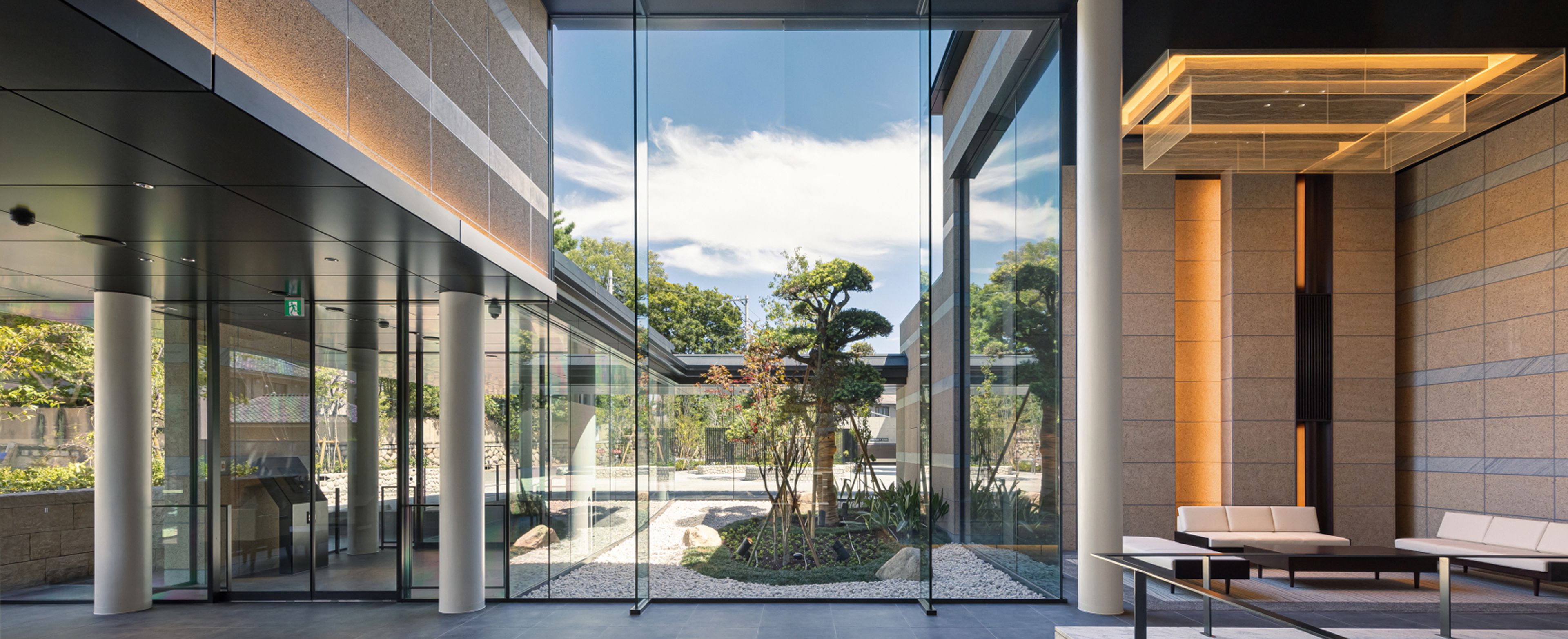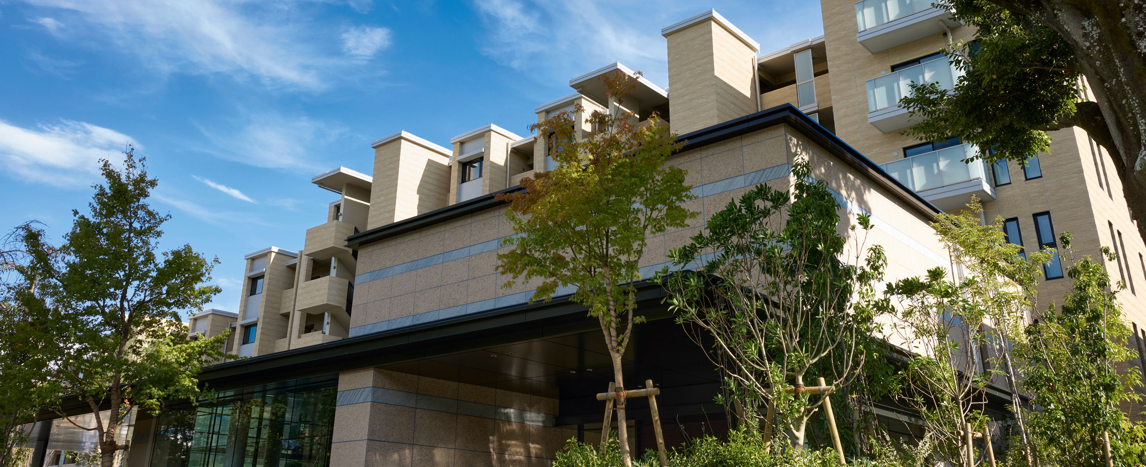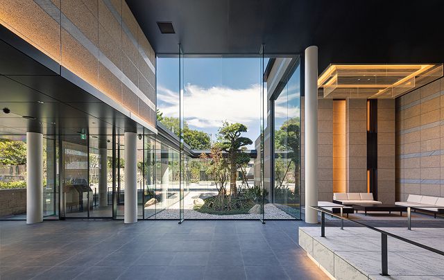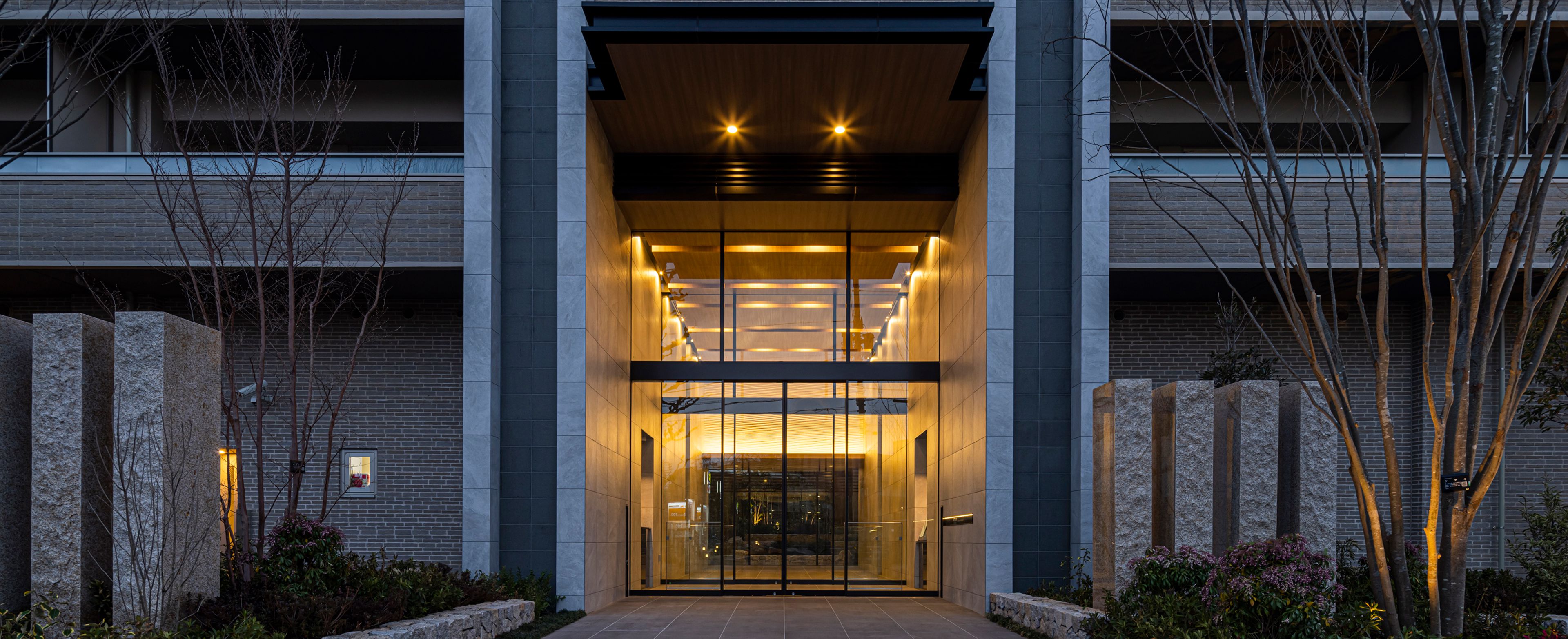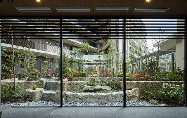 地権者の声を反映し、地域の深い愛着を受け継ぐ建替えプロジェクト - 大阪・神戸の中間、六甲山の麓に位置する集合住宅。御影石野住宅の建替え事業であり「近隣の皆にも喜んでもらえる建替えにしたい」という従来地権者の希望に応えた。容積率を消化しやすいL字型プランをあえてI型とし、ノイズとなる機械駐車場を地下平面駐車場とした。創出した余白には、御影の地に永く愛される石積や公園、そして隣地所有者とも同意の上保存した大樹を配し、伝統ある街並みと調和するデザインを実現した。