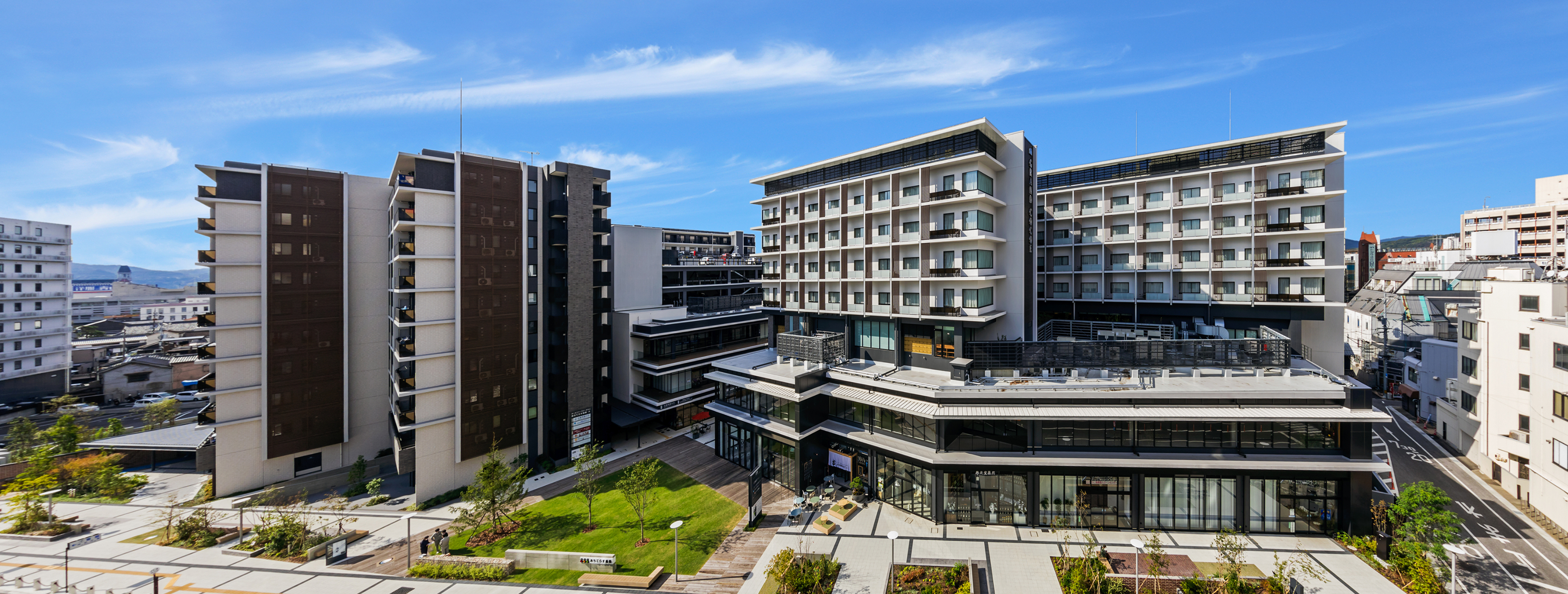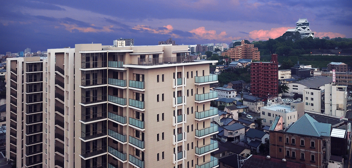 復興支援事業1980年に熊本県住宅供給公社が分譲した5棟100戸のマンションである上熊本ハイツは2016年4月に発生した熊本地震により5棟すべてが全壊。地元住民の日々のコミュニティ形成活動、民間企業の迅速な対応、国、県の協力を得た市の連携によりマンション建替えでは異例の早さの4年で災害から復興を果たした。共用部に緑地帯、防災設備を配し、地域防災に寄与するとともに地域と人と自然を結ぶ場を提供できた。