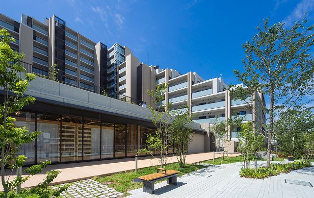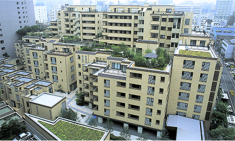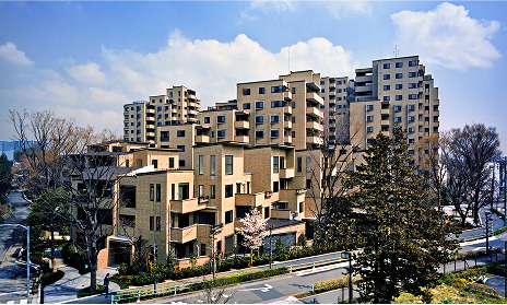 2009年アトラス国領昭和39年に旧公団が分譲した国領住宅(144戸)の建替え事業。同団地は元々、敷地内通学路を近隣住人も利用するなど、約40年にわたり地域との交流が育まれていた。そのオープンなコミュニティを次世代へと受け継ぐため、敷地内に「つなぐ街路」をデザイン。板状住宅を、低層・高層複合型(320戸)へと建替えた。人と人、団地と地域の交流を次世代に継承した。