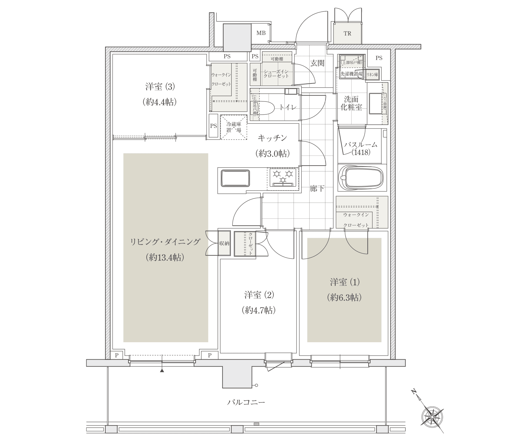 専有面積73.43㎡ バルコニー面積15.10㎡