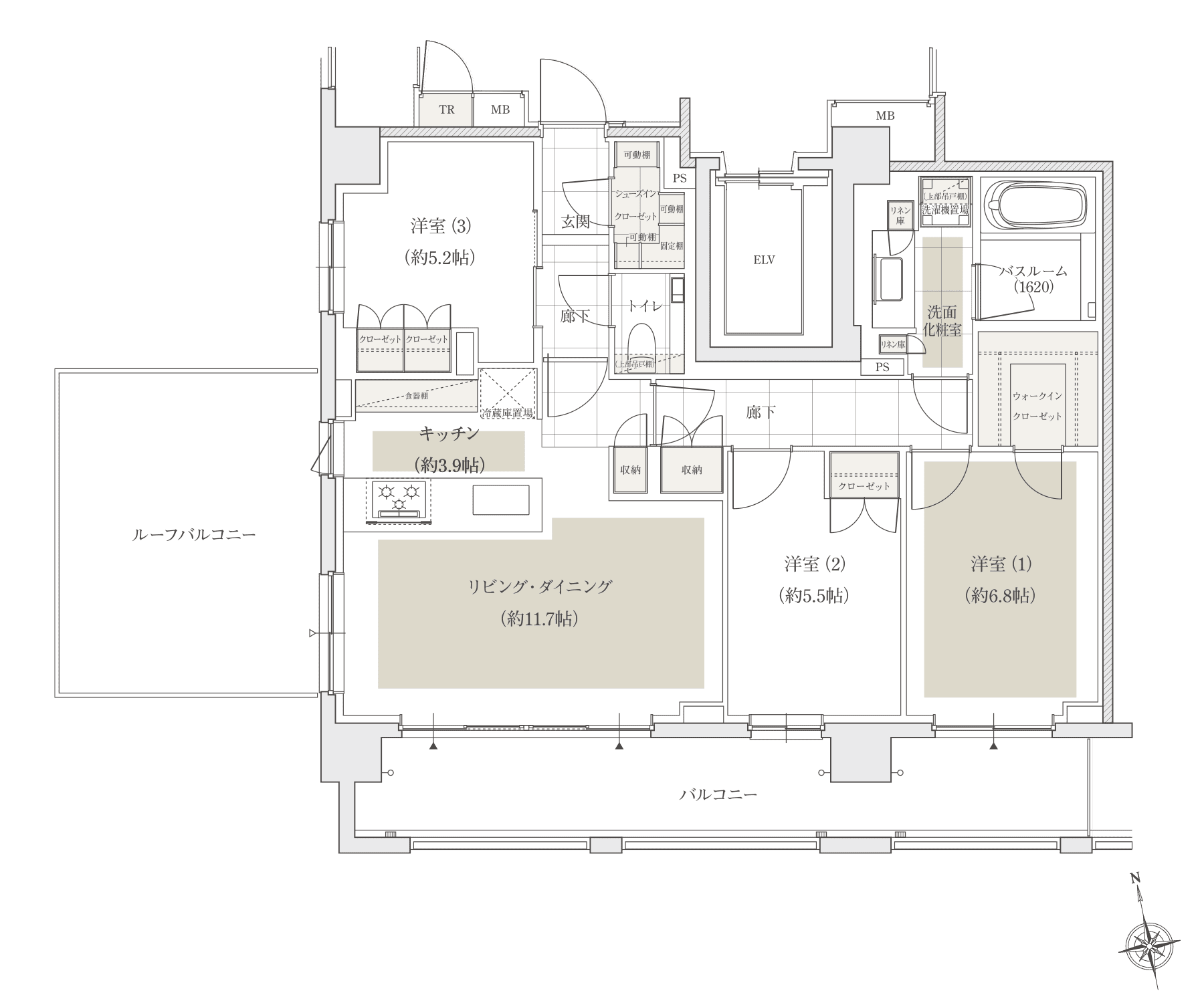 80Ds TYPE2LDK+WIC+SIC 専有面積82.37㎡ バルコニー面積16.52㎡ ルーフバルコニー面積17.17㎡ -