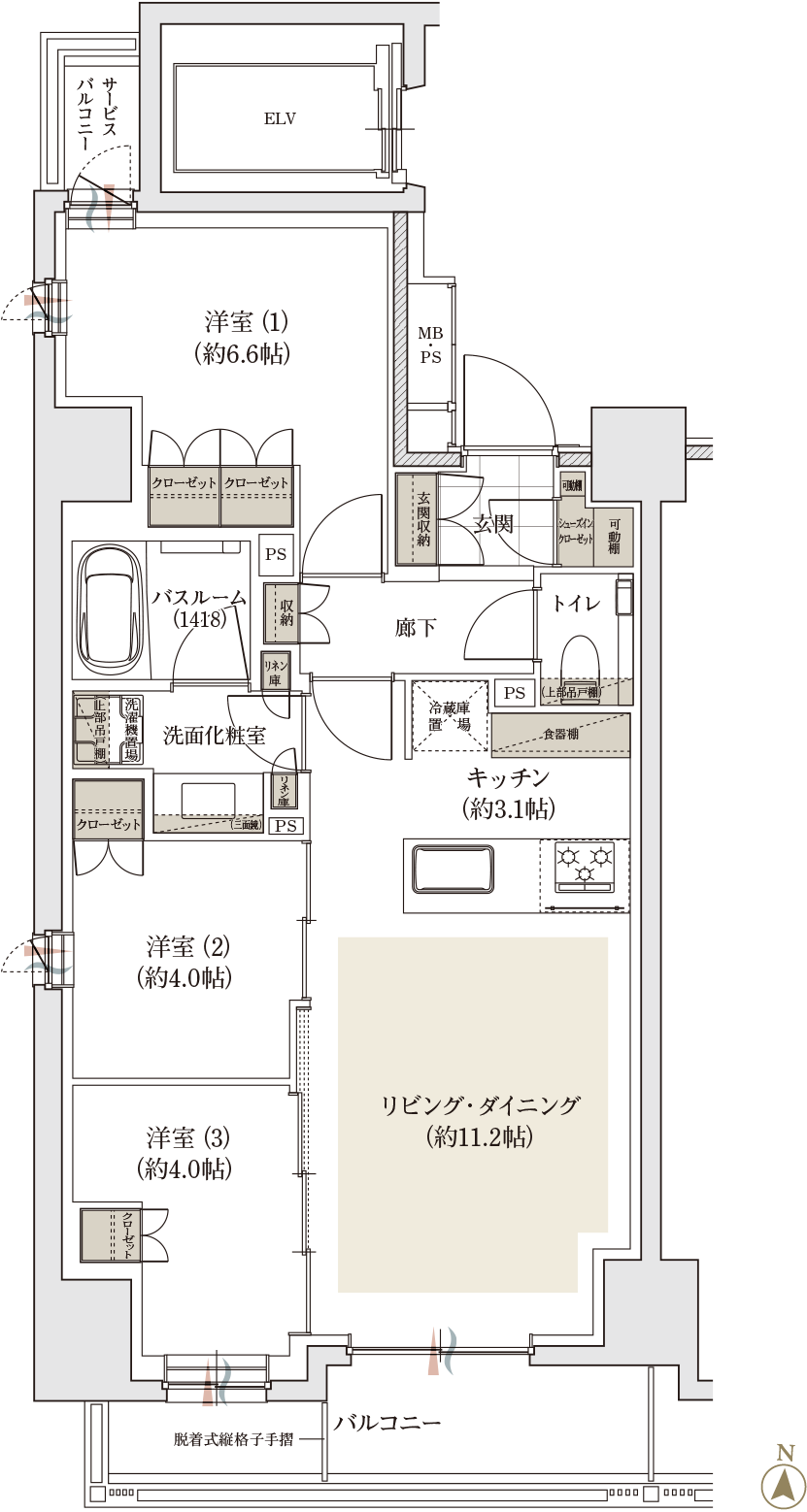 サービスバルコニー面積 / 1.68㎡(約0.50坪)