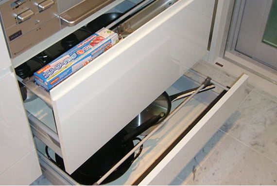 スライド収納は、勢いよく閉めてもゆっくり閉まる機能を搭載しました。