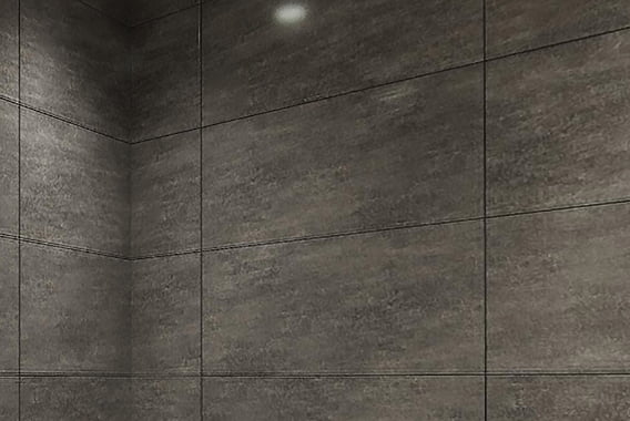 浴室のが壁は高級感のある300mm×600mm角の大判タイルを採り入れ、床面もタイル仕上げとしています。