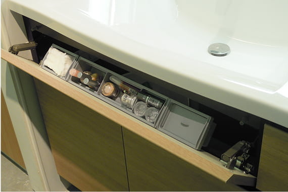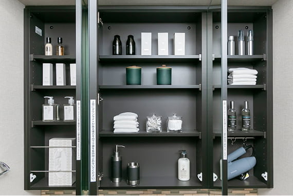 化粧小物をすっきり収納でき、出し入れしやすい収納スペースです。