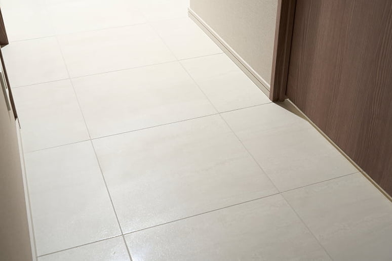 上品で落ち着きのある450角タイルを住まいの入口である、玄関・廊下・洗面室・トイレに採用。空間に品格と洗礼された印象をもたらします。