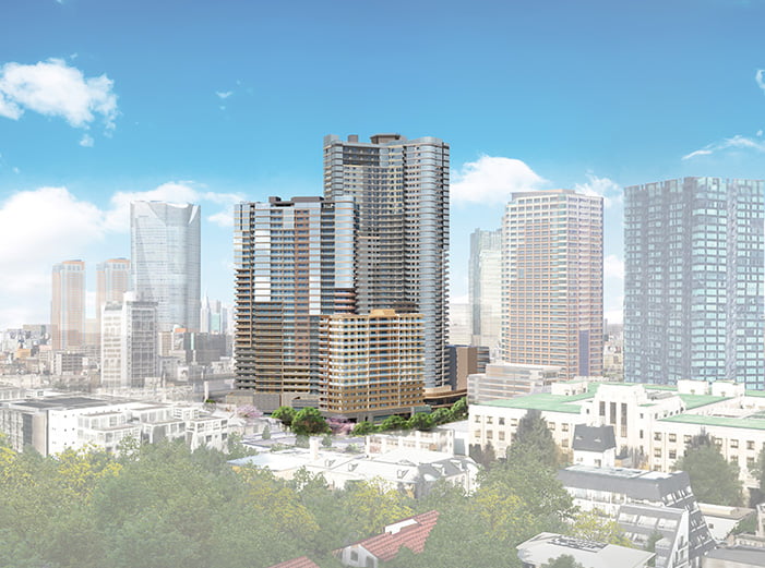 三田一丁目に広がる約2.5haの敷地を舞台に、地域に根ざした新たな暮らしの風景が誕生しようとしている。かつての街並みは刷新され、集合住宅や商業施設、保育園などが一体開発されるほか、古川沿いには潤いある親水公園も整備予定。都市の利便に寄り添いながら、居住環境としての質をより高めた、新しい「暮らす三田」が形成されていく。