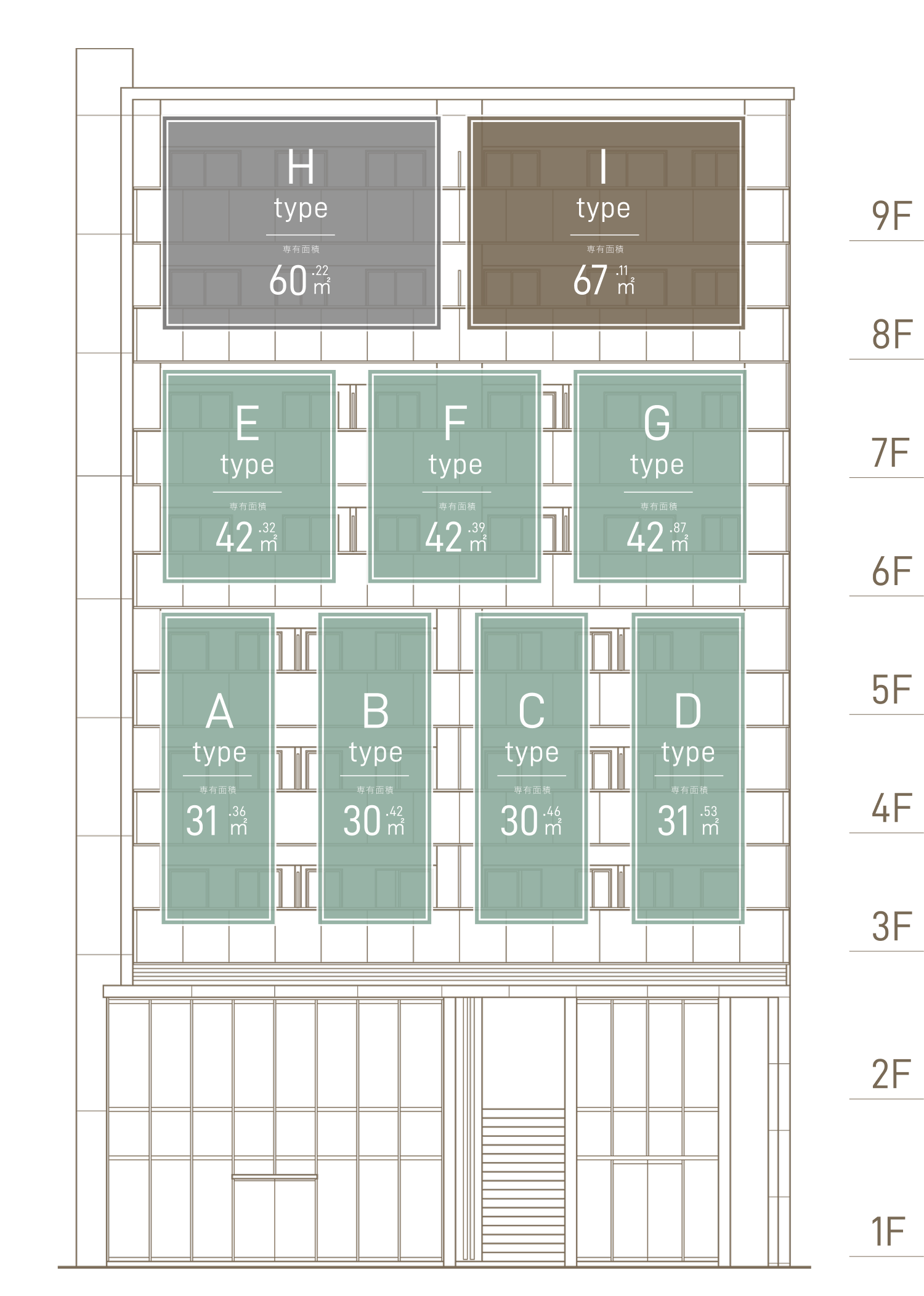 1LDK30㎡超 〜3LDK67㎡超
