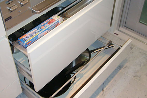 スライド収納は、勢いよく閉めてもゆっくり閉まる機能を搭載しました。