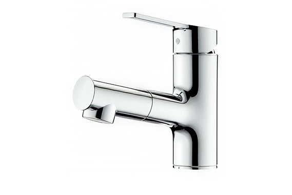 ヘッド引出し式シングルレバー混合水栓を採用。水•お湯の切り替えも ワンタッチで可能です。