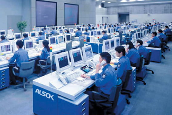 セキュリティシステム共用部や各住戸の火災などの非常事態(共用部は設備異常を 含む)を24時問365日体制で監視する「 24時間オンラインセキュリティシステム」を採用。非常時 には異常信号が警備会社へ自動通報され、警備スタッフが対応 します。