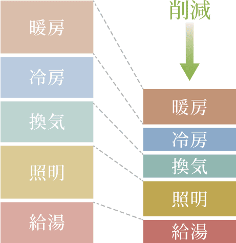 ZEH-M Orientedとは、断熱性能を向上させるとともに、高効率な設備システムの導入により、室内環境の質を維持しつつ大幅な省エネを実現し、共用部を含むマンション全体での一次エネルギー消費量を20%以上削減したマンションです。